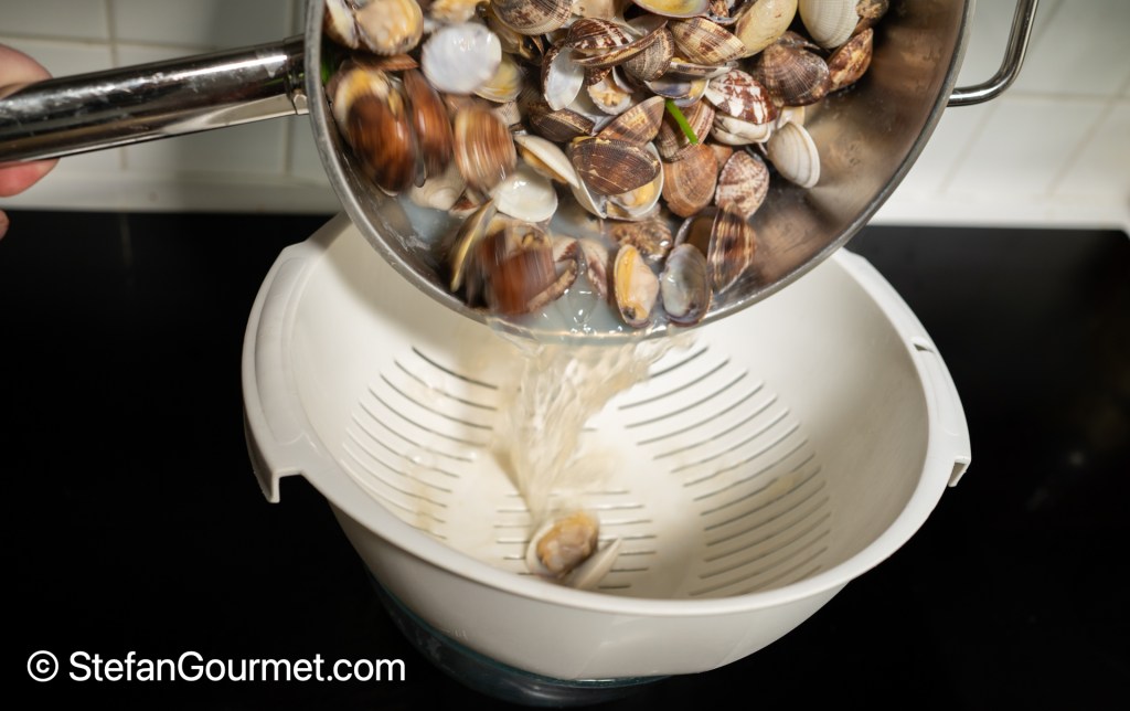 Drain the vongole and collect the liquid.