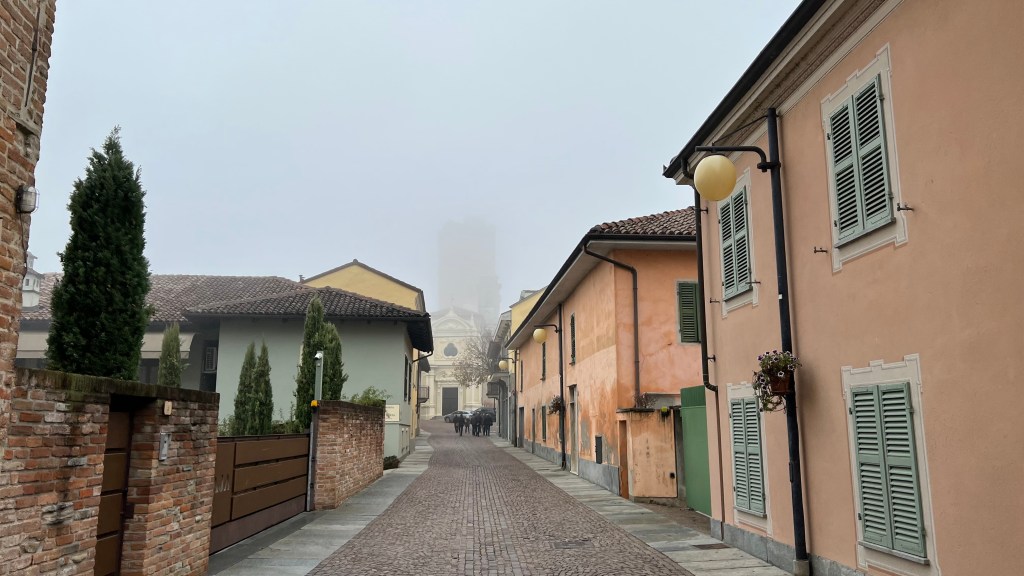 The next day started with a visit to the Enetoca Regionale del Barbaresco, where we had an explanation about Barbaresco in the very nice tasting room located in the characteristic tower in the village of Barbaresco (you can hardly see the tower in the photo because of the fog).