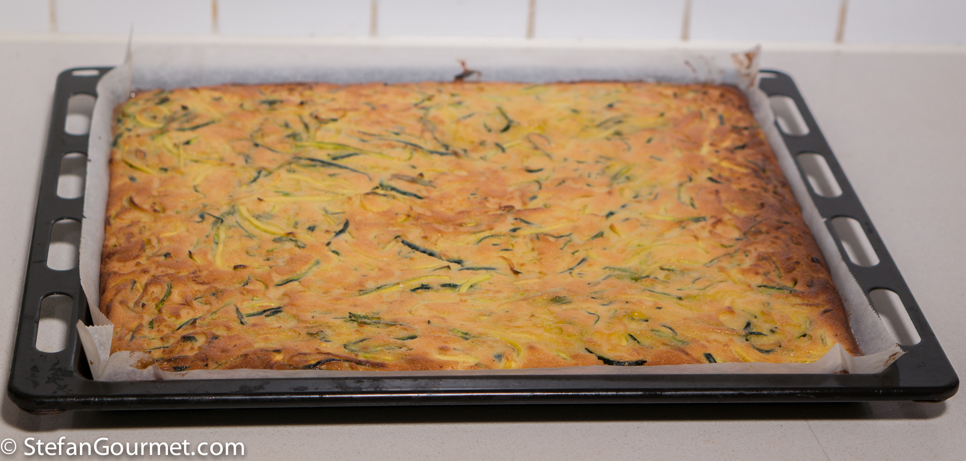 Scarpaccia is a zucchini cake from the northern coast of Tuscany. There are two versions: savory from the town of Camaiore, and sweet from Viareggio. Scarpaccia means “ugly shoe” and refers to the shape, which is rather thin (about 1 cm or half an inch thick). In the photo above you can appreciate why it is called that, although you could make it look pretty with a bit of icing sugar and a garnish of some basil leaves. More important: it is delicious, and easy to prepare. This can be served for breakfast, with tea or coffee, or as a dessert.