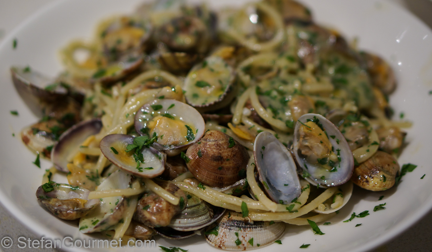 Spaghetti alle vongole is one of our favorite dishes. This pasta with clams has great depth of flavor because of the juices that the clams will release when you cook them. Apart from the time needed to allow the clams to purge themselves, it only takes as long as it takes to cook the spaghetti.