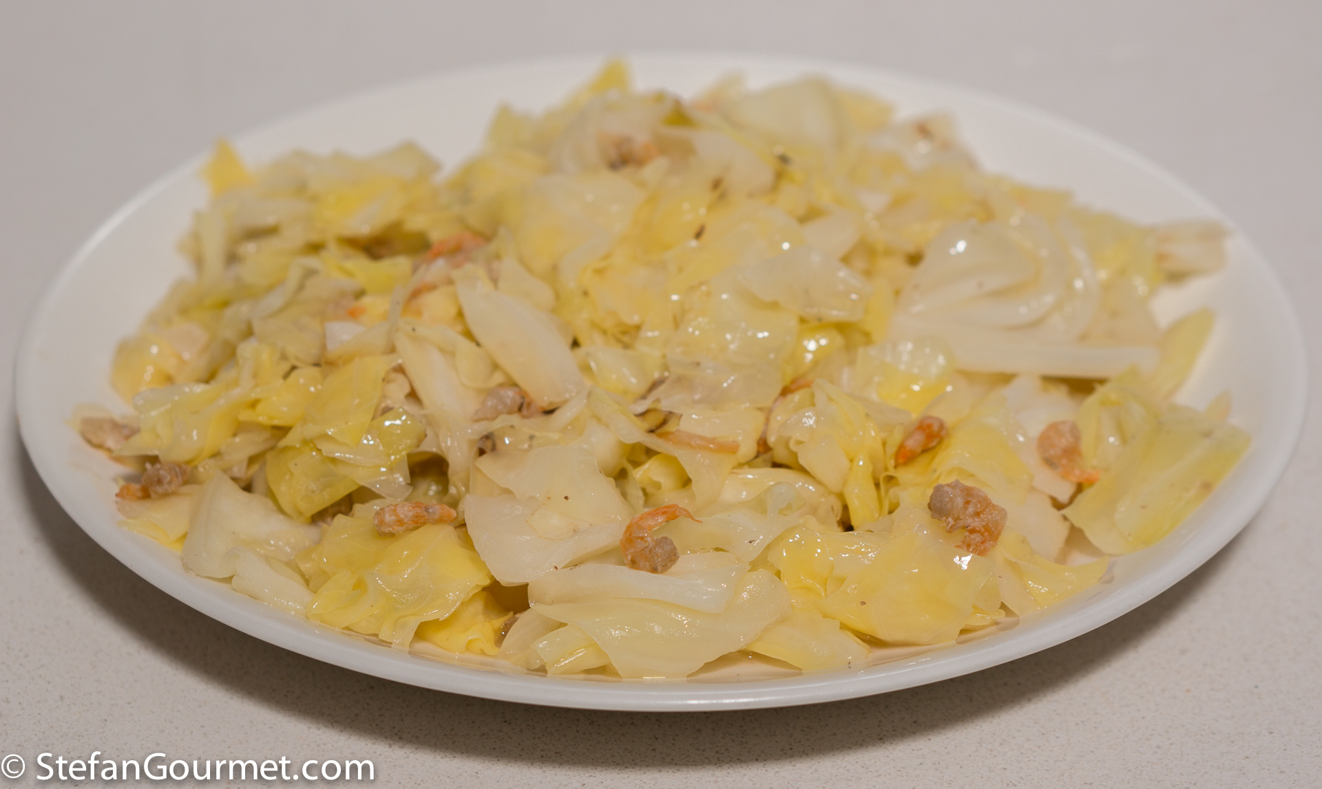One of my favorite dishes from Taiwan is 3 cup chicken, which is called this way because the sauce has equal parts of three ingredients (sesame oil, soy sauce, and rice wine). The main ingredient is however Thai basil. We had it with fried rice and stir fried cabbage.