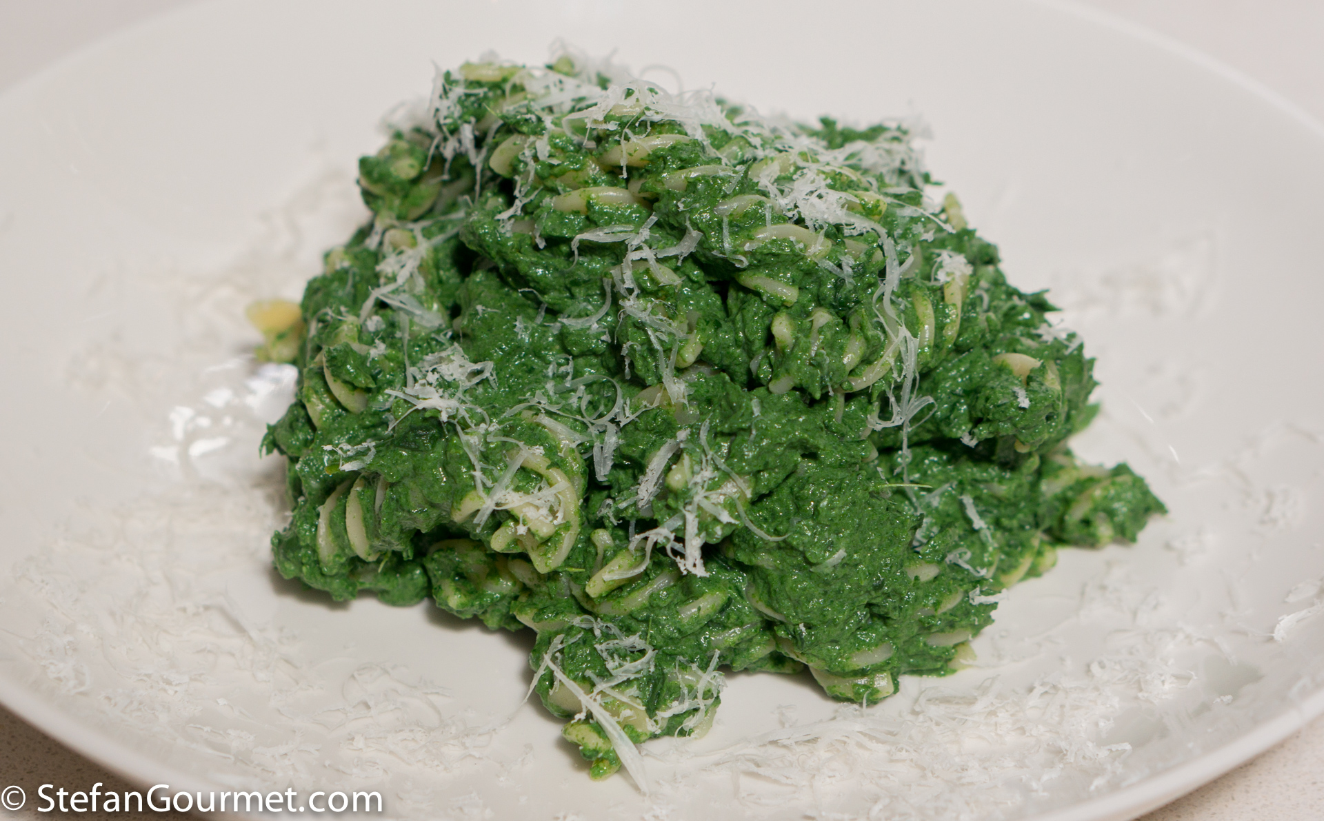 Fusilli pasta with spinach and ricotta is very tasty and fusilli are the ideal pasta shape to ‘absorb’ the spinach.
