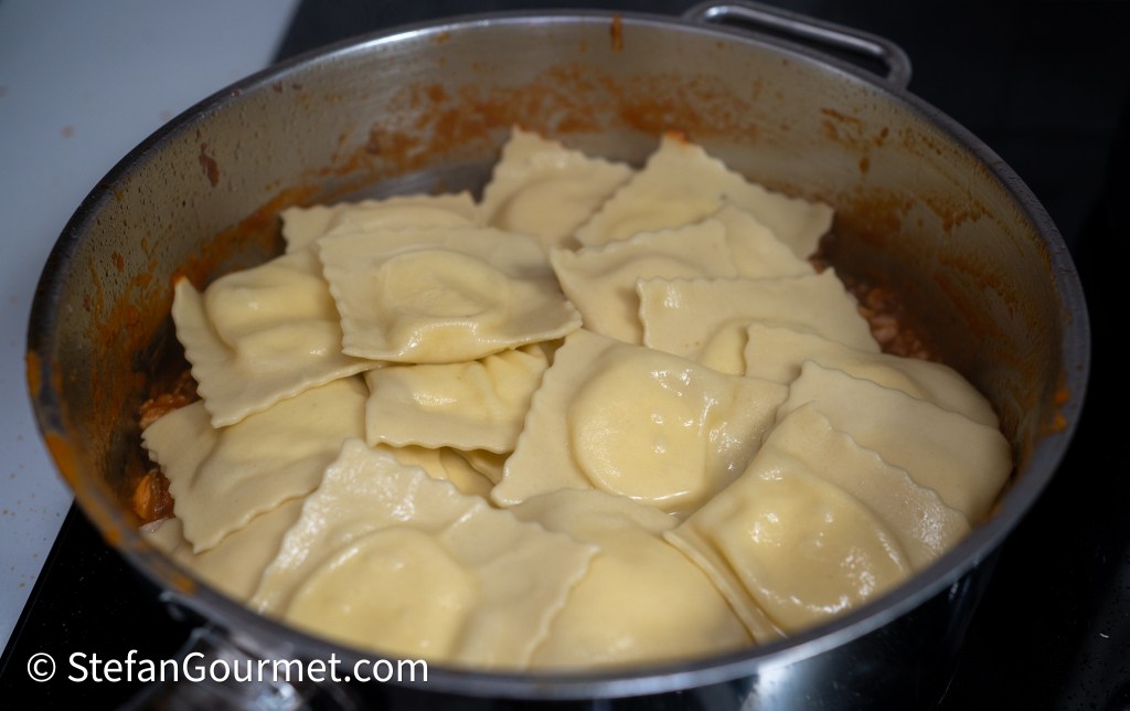 In the meantime, boil the ravioli in plenty of salted water for 2-3 minutes.