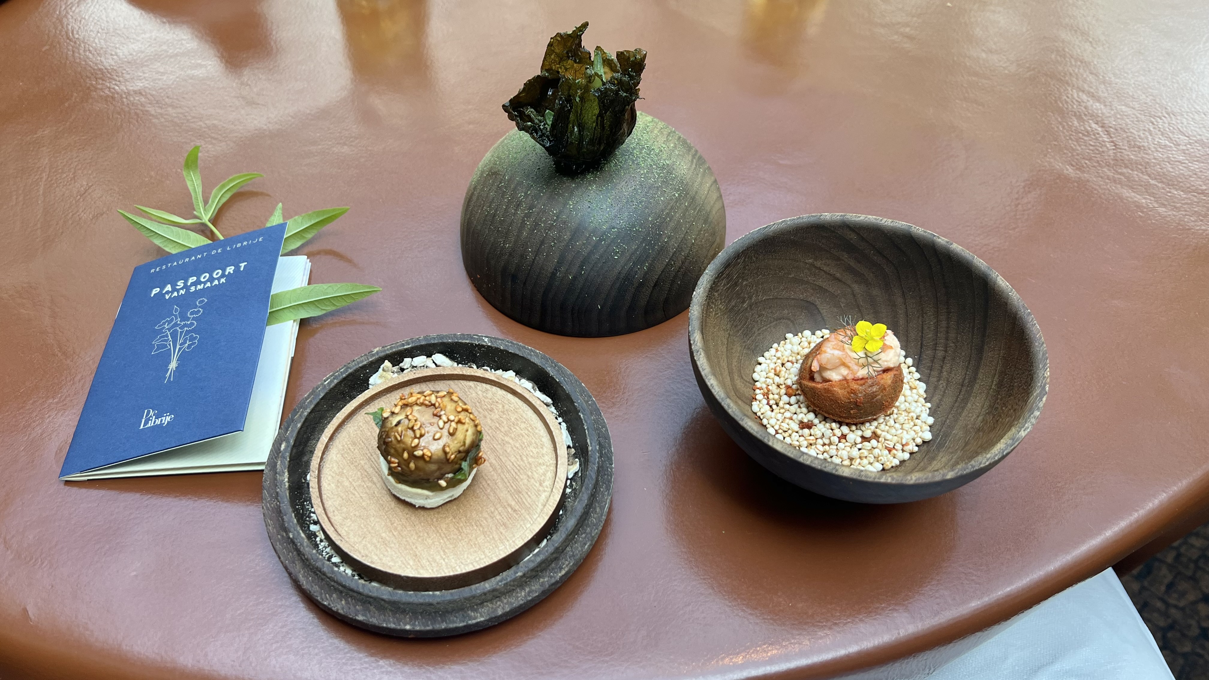 Each quarter the Librije features three of its long-time suppliers with amuses bouches. This time it was crayfish, a shiitake mushroom ‘burger’, and deep fried seaweed with cod liver.