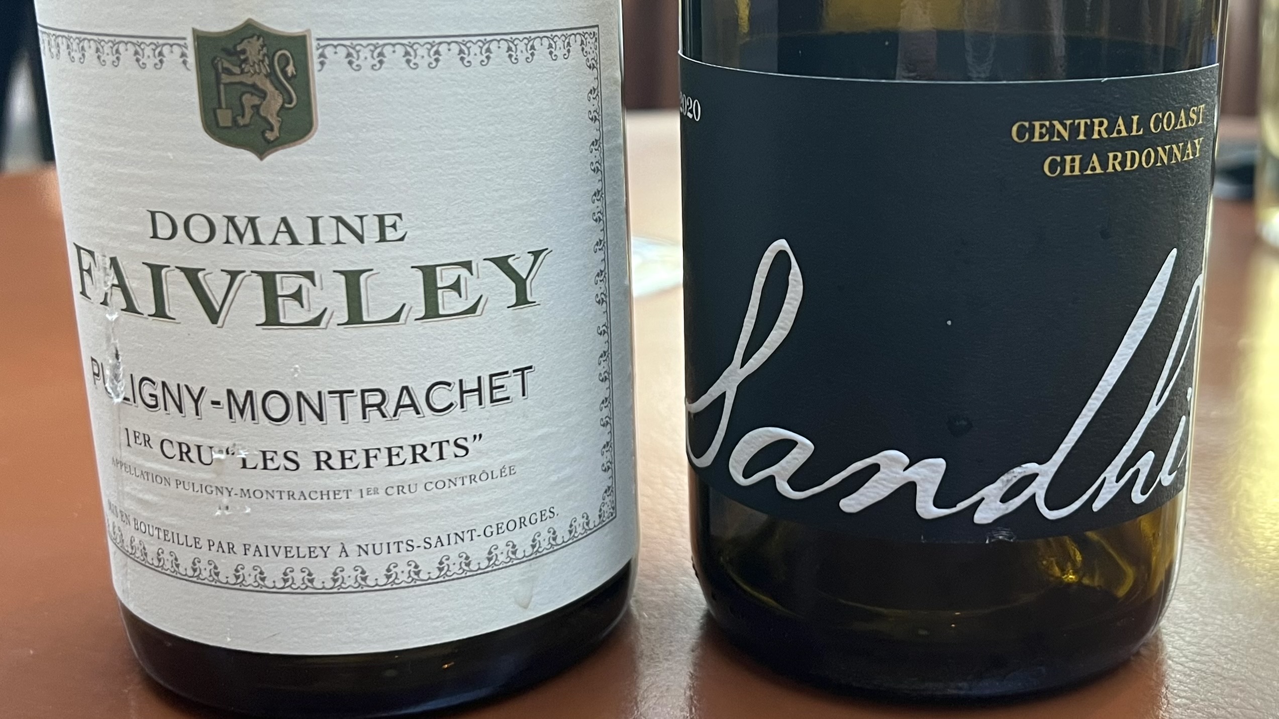 The next two dishes came with the same two Chardonnays, one a Puligny-Montrachet 1er Cru Les Referts 2016, the other from Central Coast in California. The Chardonnay from California was remarkably ‘cool climate’ for a wine from there, with great balance and minerality. The Puligny was amazing with great complexity and balance.