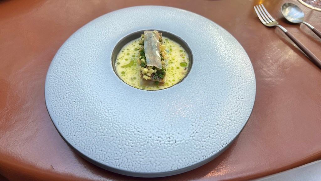 It was paired well with an oyster with blood sausage and kefir. The oyster was very delicate and elegant.