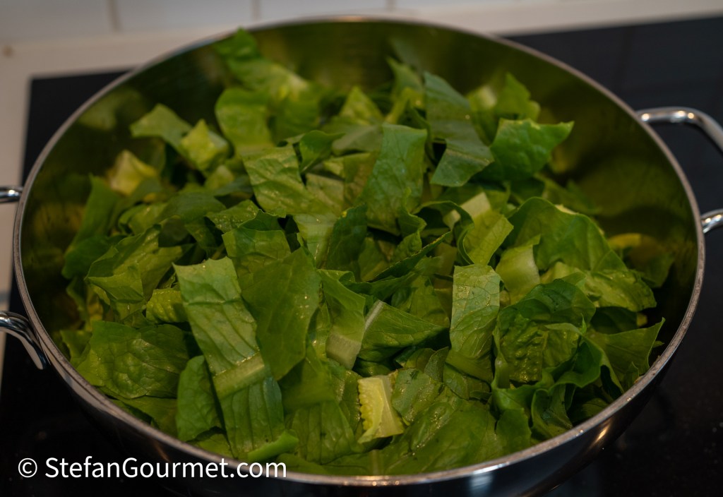 Slice the Romaine lettuce into strips and wash and dry them.