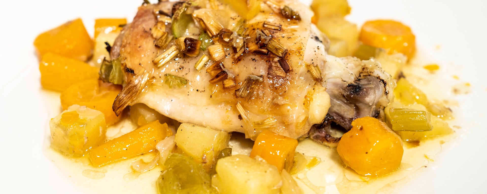 Serve the chicken with the vegetables on preheated plates, and spoon over some of the liquid from the dish.