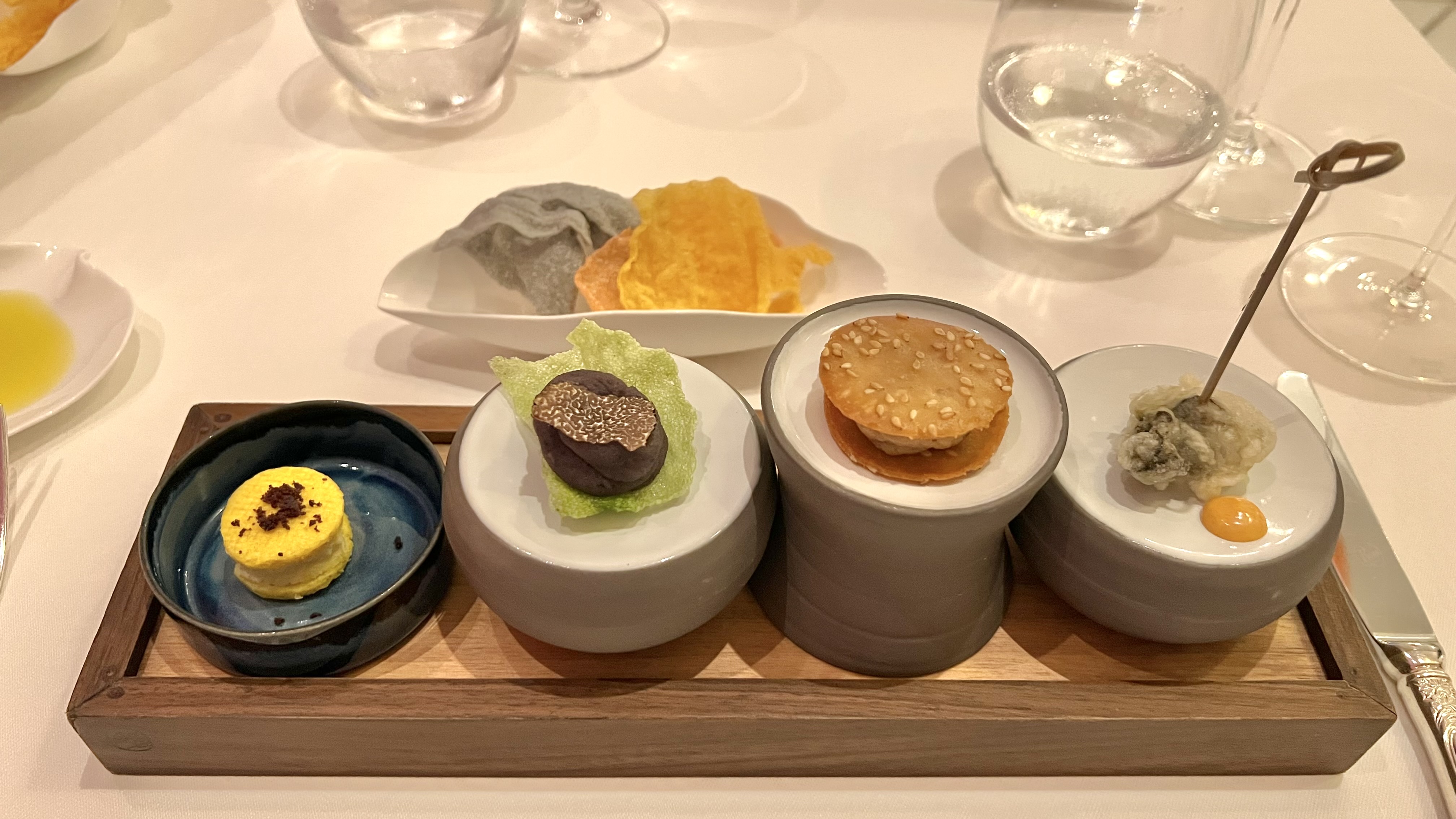 The amuse bouche were wonderful. My favorites were the oyster tempura and the truffle.