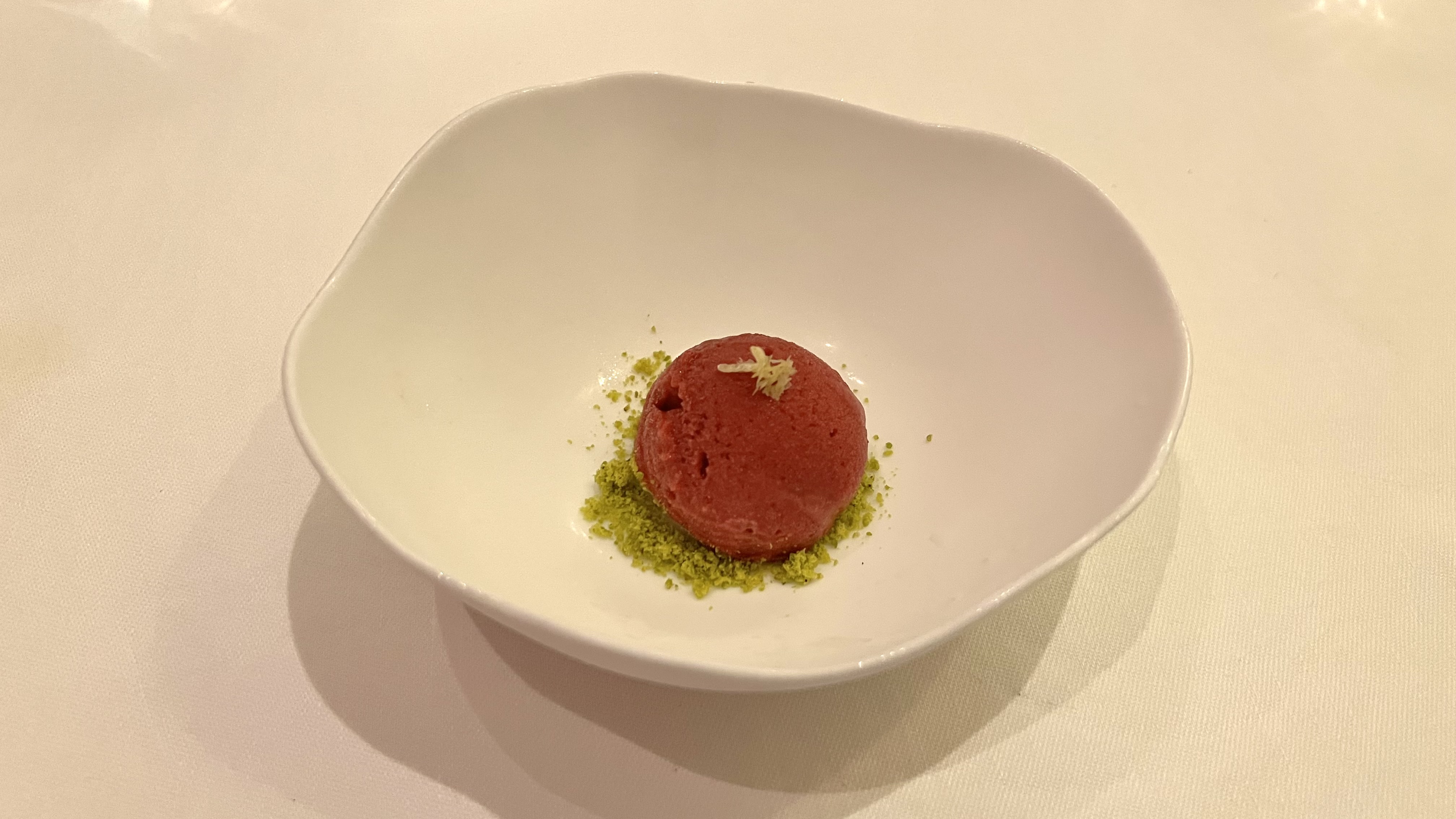 The palate cleanser was a raspberry sorbet.
