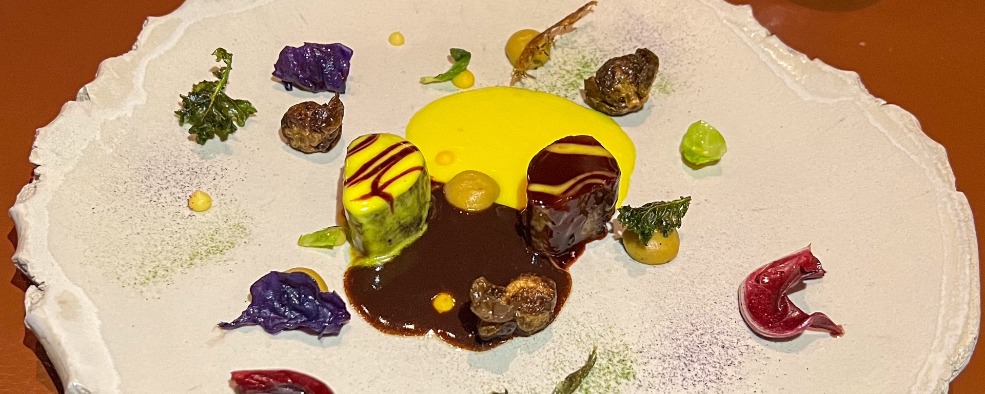 This wine was excellent with the hare with crispy Brussels sprouts, sauce royale (with chocolate), and turmeric sauce.