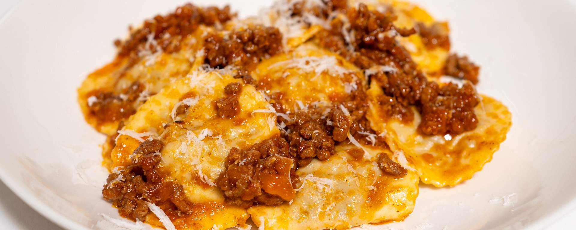When the ragù is ready and you are ready to serve, bring a large pot of salted water to a boil, and boil the ravioli for 2 minutes only.