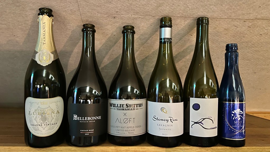 - Matilda Sparkling 2020 (purchased fruit from Northern Tassie, 52% Pinot Noir, 41% Chardonnay, 7% Pinot Meunier, second fermentation in the bottle, aged 2.5 years on the lees): green apple, fresh, soft mousse.