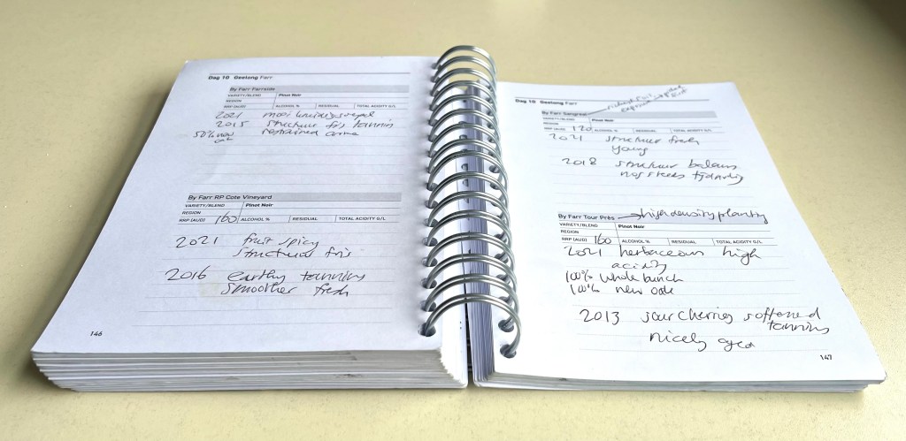 - Cooinda Vale Pinot Noir 2022 (11 months in French oak (35% new), 20% whole bunch): red fruit, oak, spicy, structure, ripe tannins.