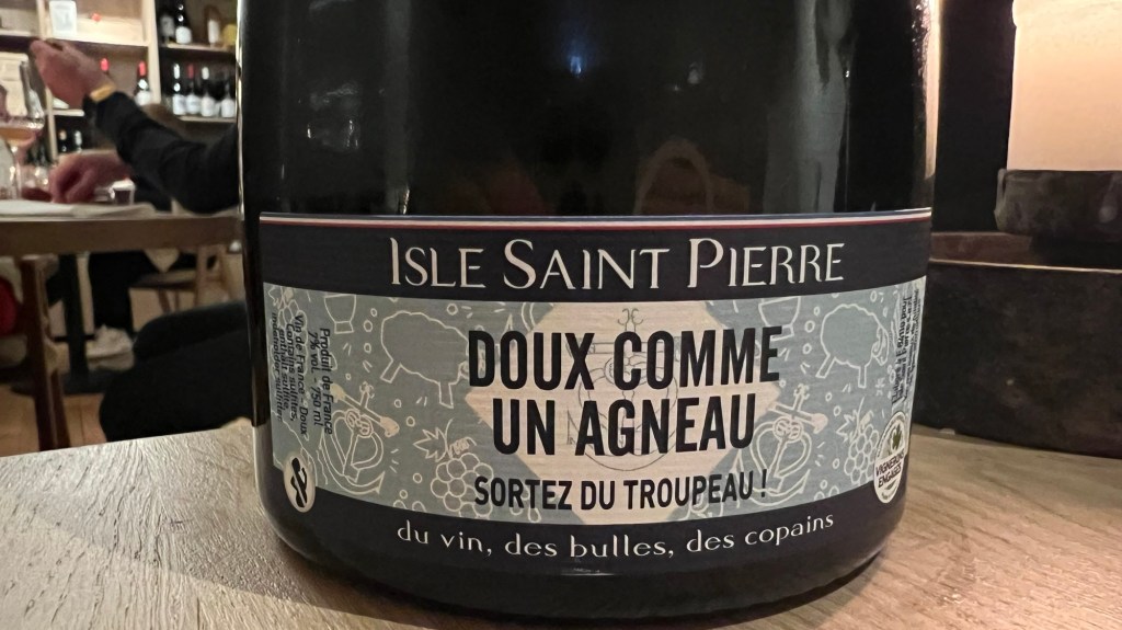 The wine pairing for dessert was a sparkling Souvignier Gris from the South of France. It was presented to us as a sparkling Gewurztraminer, but I could not detect any of the characteristic aromas. According to the website of the producer it is a Souvignier Gris, which makes more sense. It is like a lighter version (less fruity, less sweet) of a Moscato d’Asti.