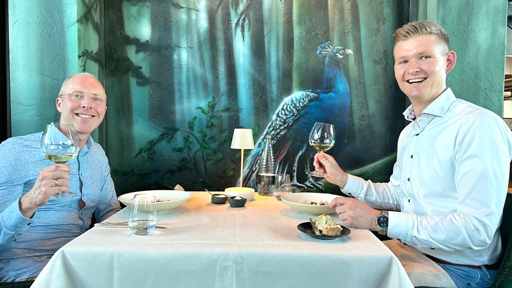 All the wines were nice and all the pairings were good. The sommelier has done a very good job of finding ‘budget’ versions of great wines. As a wine lover I would have liked the option to go for a real Condrieu, a real Rosso di Montalcino and a real Saint-Emilion, wines that would be more complex with a longer finish, but also a lot more expensive. But these wines were paired well, very enjoyable, and great value for money.