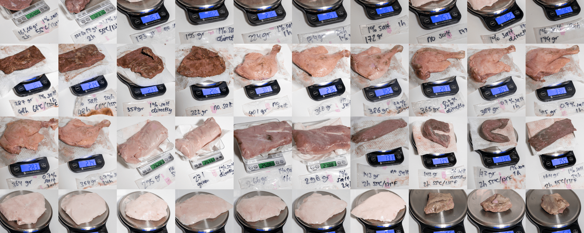So then I did a lot of experiments where I cooked meat sous vide right away after salting and vacuum sealing it and compared that to allowing the salt 1 hour or 24 hours to penetrate into the meat before cooking. I did this with meats requiring a short cooking time such as chicken breast, but also with cooking times of 24 or even 48 hours. Most of the experiments were with lower cooking temperatures.