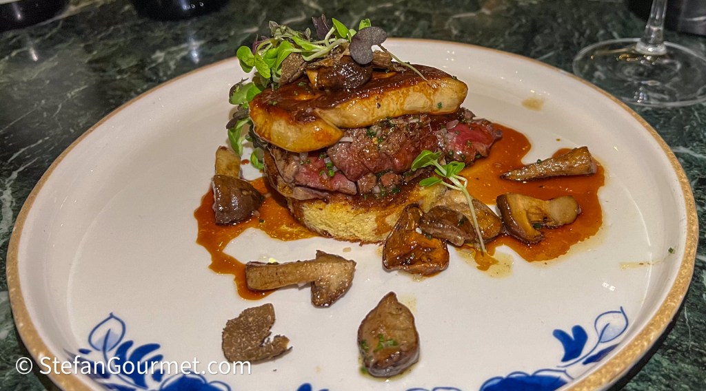A nice gesture of the bartender was to get us a taste of the 2016 Dominus that apparently had been refused by another table, a very expensive Cabernet from Napa Valley.