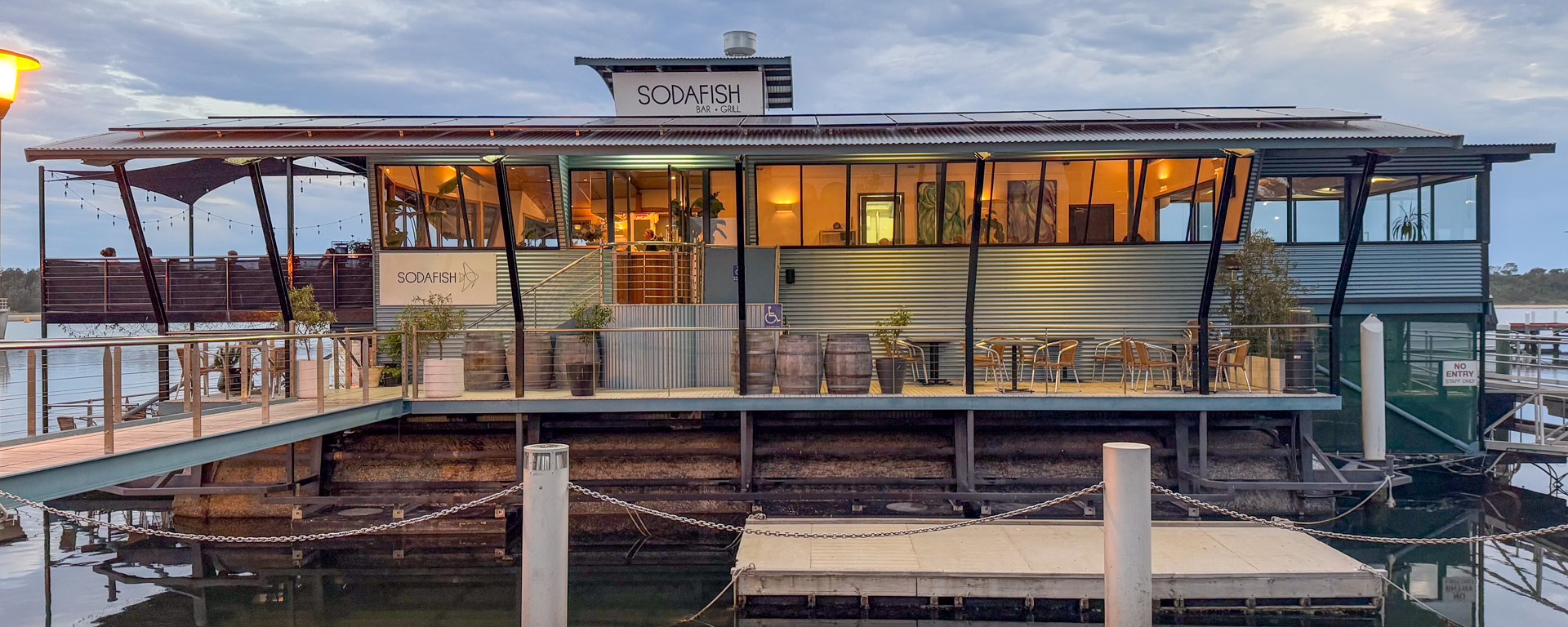 As we were strolling down the Esplanade in Lakes Entrance, Victoria, Australia, we saw a restaurant called Sodafish on a boat and had a look at the menu. We were surprised to see a degustation menu with wine pairing. The menu looked good, so we booked a table for dinner that evening, rather than cooking in the camper.