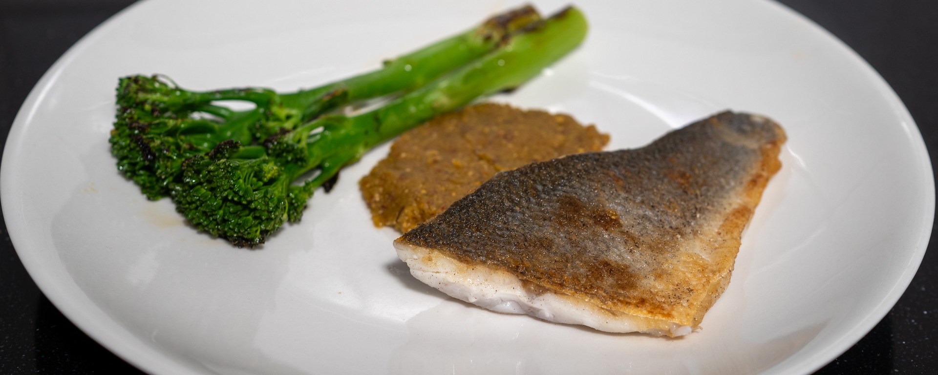 Serve the fish (skin side up) with the macadamia paste and broccolini. Season the broccolini with salt.