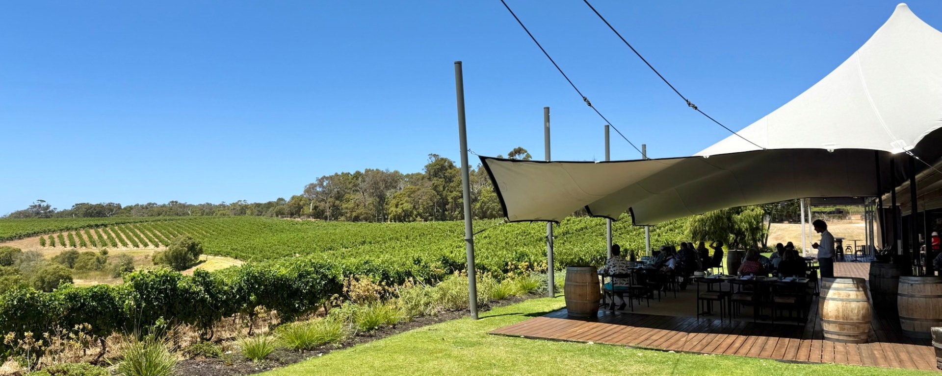 We are now in the Margaret River area, in the south-west of Australia, south of Perth. This area is known for having a Mediterranean climate and its wines. Many wineries have a very good restaurant that offers a tasting menu for lunch with a wine pairing of wines from the estate. The first one we are visiting is Wills Domain. The restaurant offers great views of the vineyards, as well as a signature menu (6 courses for AU$ 189, wine pairing $75), a tasting menu (4 courses for $119, wine $55), as well as à la carte. We opted for the tasting menu.