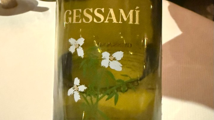 The first wine of the pairing was a Gessamí by Gramona, Penedès, Spain, a blend of Gewürztraminer, Moscatel, and Sauvignon Blanc. Very aromatic but nicely balanced.