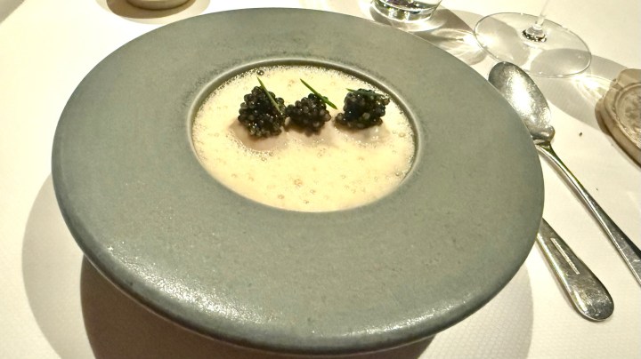 It was a good pairing for Dutch oysters poached in Champagne with a sea urchin-flavored beurre blanc, and organic Osetra caviar from Spain. Wow, what a dish! The balance of flavors was absolutely perfect and the oysters had a great texture.