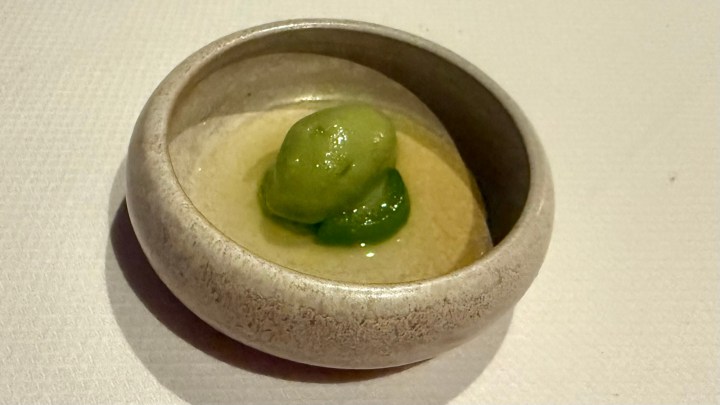 The first amuse was a smaller variation of a dish that was in the chef’s menu last time, but with crab instead of squid. It is inspired by Chawanmushi, a Japanese dish of duck egg steamed in a cup Excellent flavor and texture with nice contrasts.