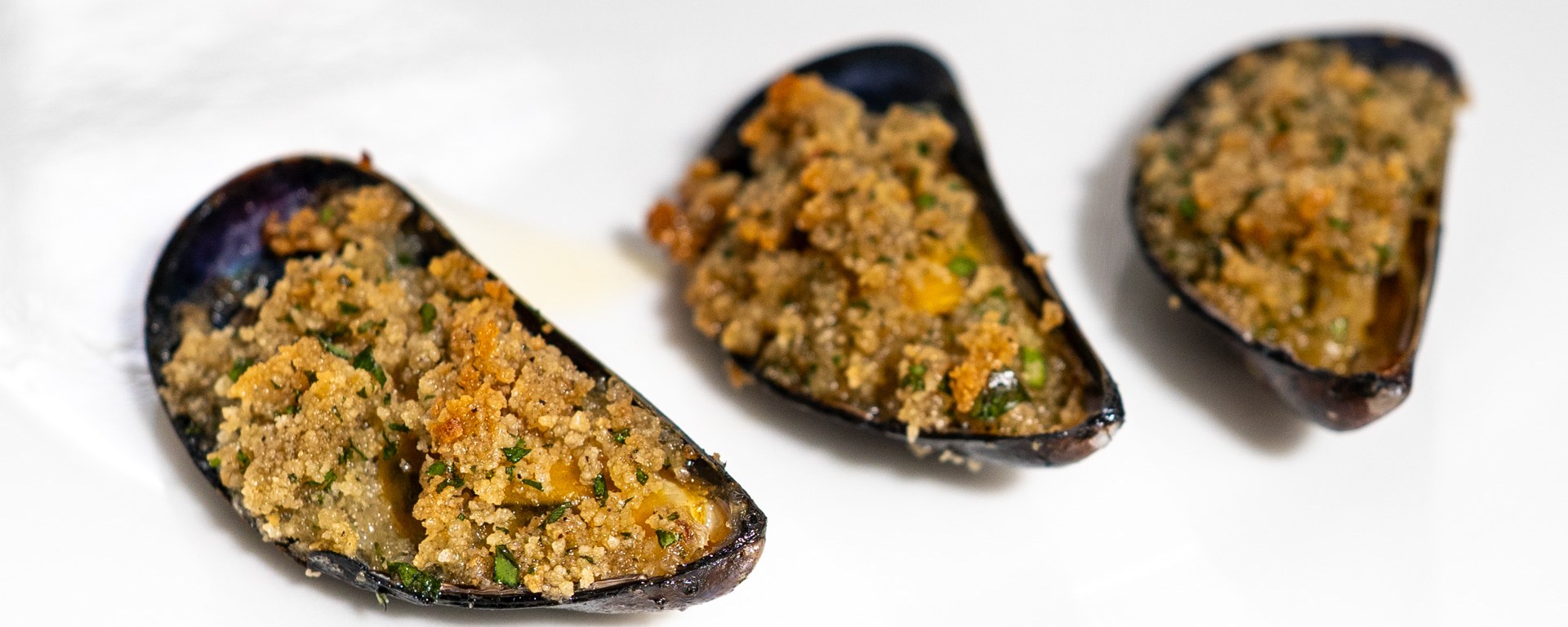 In May, we visited the Venetian coast, where one of the most common ways to serve seafood is gratinated with breadcrumbs. This preparation is especially delightful with mussels—their natural brininess is deepened by the heat of the oven, while the breadcrumbs are flavored by the mussel juices, creating a golden, savory crust. It’s a humble recipe, yet irresistibly delicious.