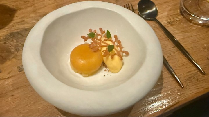 This was a good pairing for the nice dessert of mango cream with apricot, basil, and passion fruit sorbet.
