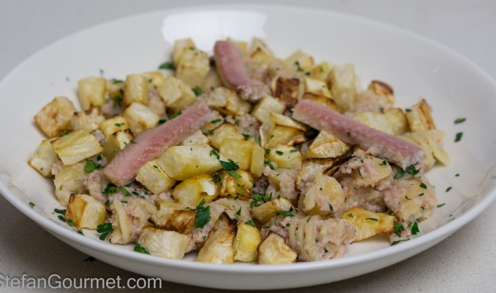 Zoodles are noodles made from zucchini. You make them with a gadget called a spiralizer. There are electric ones as well has hand-operated models. I got one of the latter after reading ChgoJohn’s blog post about the spiralizer he had … Continue reading Zoodles with Fish and Eggplant Ragù (Tagliatelle di Zucchine al Ragu di Pesce e Melanzana)