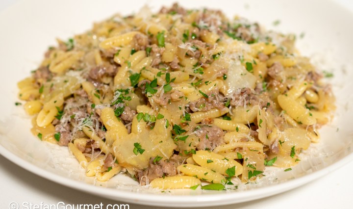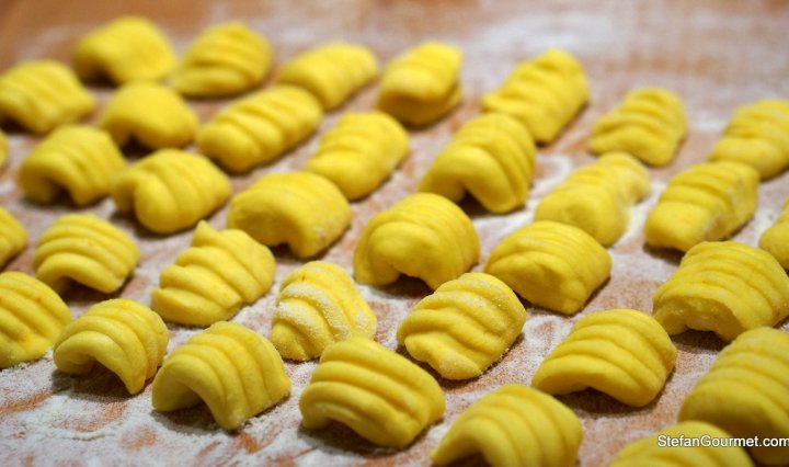 I’ve been to most of the regions of Italy, but not yet to the island of Sardinia (Sardegna in Italian). Owen, one of the long time readers of this blog, requested a recipe for malloreddus, the typical pasta shape of Sardinia. At first I thought I had never heard of them, but then I realized that they are also known as “gnocchetti sardi”, and that DeCecco produces a dry version of them. I did some research and talked online to someone from Sardinia and found out that malloreddus are made from semolina flour and water, and that on Sundays saffron is added to the water (as saffron is too expensive to use on a daily basis). Continue reading “Malloreddus Pasta with Fennel and Sausage”