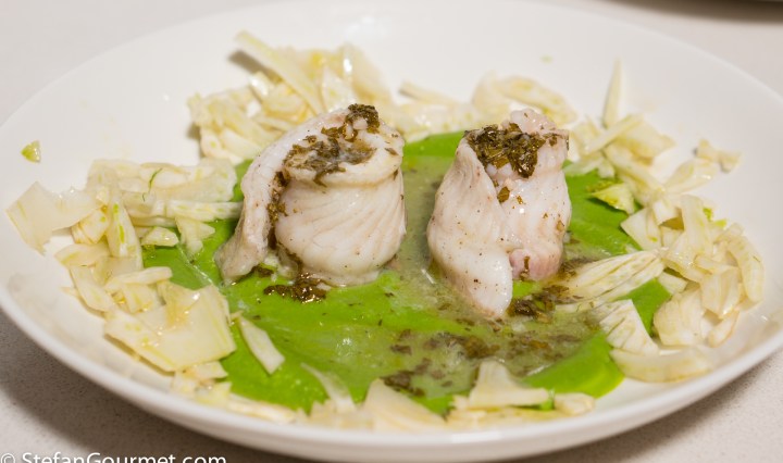 This is an improved version of the Sous-vide cod with braised fennel and white wine sauce that I made more than a year ago. Apart from what I’ve learned about plating and photography since then, the improvements in the recipe are: