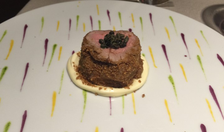 As part of our wine tour through Friuli, we had dinner at La Subida Trattoria al Cacciatore. The chef’s specialty is girini—his interpretation of a traditional local dish made by letting pasta batter drip into boiling water to form fresh pasta. What … Continue reading Girini (Crumbles of Dropped Pasta) with Rabbit, Samphire, and Cherry Tomatoes