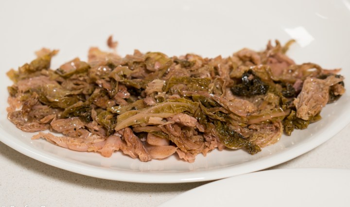 You may have noticed something else on the plate along with the venison and mushroom stew of my previous post. Because the stew was served with a wine from Piemonte, I wanted to serve a contorno (side dish) from that … Continue reading Sancrau alla Piemontese (Savoy Cabbage with Vinegar and Anchovies)
