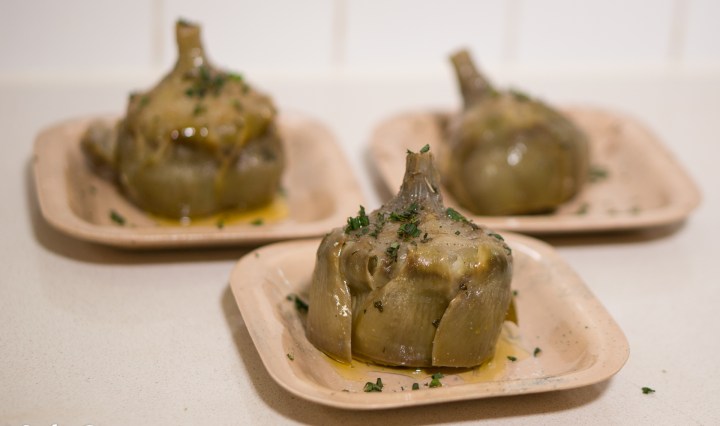 If you go to a trattoria in Rome, chances are that you will find carciofi alla romana on the menu. This way of preparing artichokes is quite simple, but very good. The mint and garlic add a nice fragrance to … Continue reading Artichokes alla Romana (Carciofi alla Romana)