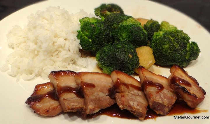 Sous-Vide Pork Belly Asian Style with Garlicky Broccoli