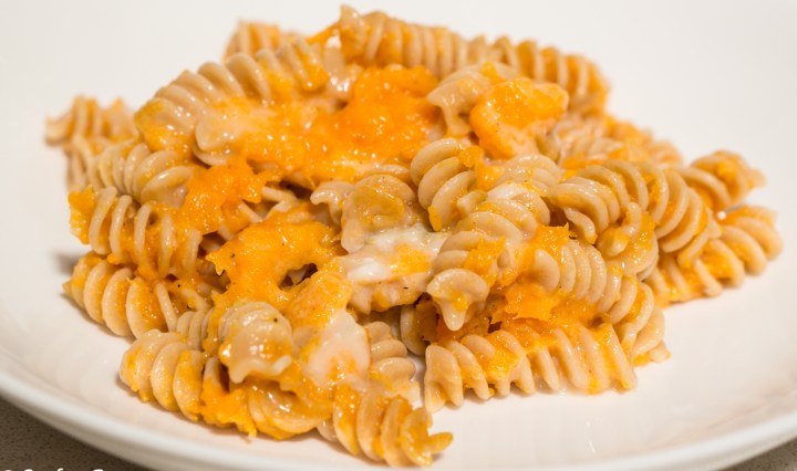 After making yesterday’s butternut squash risotto, I still had half of the pumpkin puree left. I opened my refrigerator and pondered what to do with the leftover puree. Then I noticed a nice piece of gorgonzola, and I quickly made up … Continue reading Wholewheat Fusilli with Pumpkin and Gorgonzola (Fusilli Integrali alla Zucca e Gorgonzola)