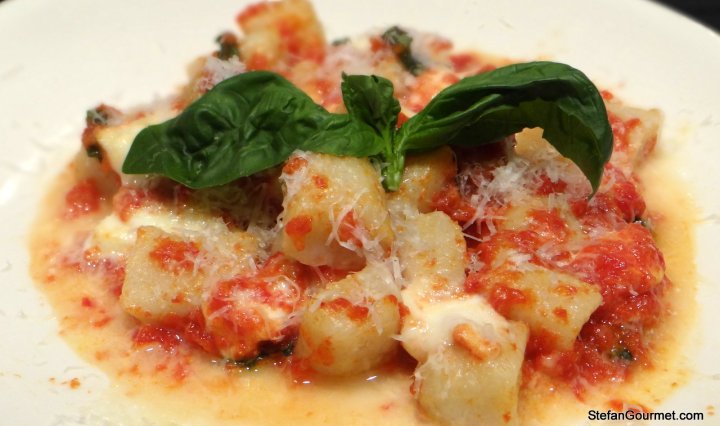 Home made potato gnocchi made from scratch are the best! They are so much better than chewy store-bought ones. I’ve only posted about potato gnocchi once before: gnocchi with gorgonzola was the first recipe I ever posted on this blog. The city of Sorrento is near the island of Capri, the island that gave its name to the famous Insalata Caprese with tomato, mozzarella, and basil. You can think fo Gnocchi alla Sorrentina as the gnocchi version of this salad, because the gnocchi are dressed with fresh tomato sauce, mozzarella, basil, and parmigiano reggiano. This combination is always a winner, and it is even more so with feathery light homemade potato gnocchi. Continue reading “Gnocchi alla Sorrentina”