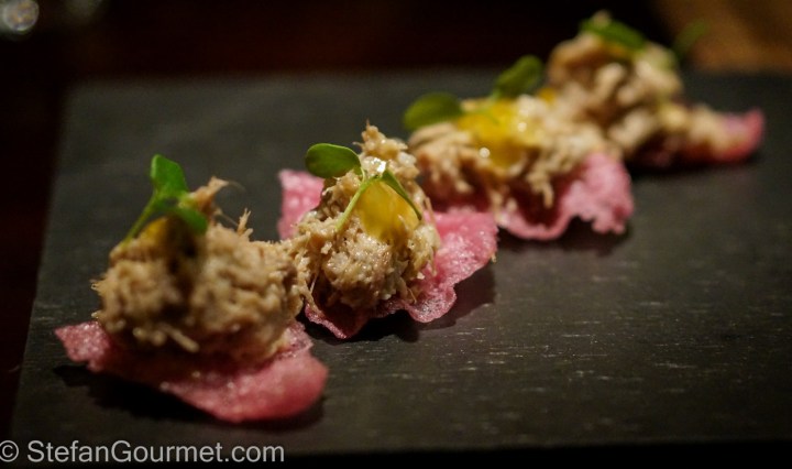 Chef Ron Blaauw gave up his restaurant with two Michelin stars (at which I never dined) and replaced it with a “gastrobar”, which after its first year received a single Michelin star. Ron Blaauw wanted to create a more accessible restaurant, and I think he has succeeded. At Ron Gastrobar you can order as many dishes as you like for 15 euros (about US$ 20) each. They are of an intermediate portion size: not as big as a main course, but not a small bite either. Three or four dishes are enough for a meal. The term “gastrobar” also means that there are a lot of tables and quite close together. The restaurant is a bit like a “grand café”. I was curious about this new restaurant, and so I went to check it out. (Photos taken with my iPhone in bad lighting conditions.) Continue reading “Dining in Amsterdam: Ron Gastrobar*”