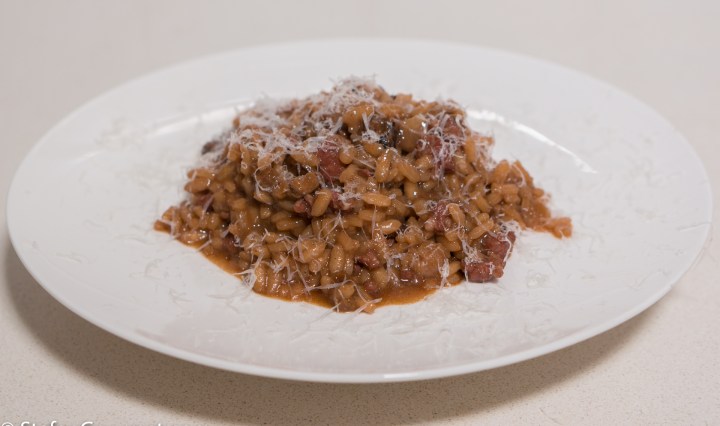 And now for today’s recipe. Yesterday evening was the first serata piemontese, and it was a great success. Tonight is the next installment, with the same food but mostly different wines. I will do a full report in a later post. I included two primi piatti in my Piemontese menu: agnolotti and risotto al barolo con salsiccia. Risotto is usually made with just a bit of white wine, but Piemonte has the speciality of using red wine and quite a lot of it so the main flavor of the risotto is that of the wine. The end result will thus depend on the quality of the wine used, and though it may seem like a waste of a good barolo, I strongly urge you not to use a cheap red wine for this as that would ruin the dish. Last night everyone agreed that this risotto was different, but delicious. Continue reading “Risotto al Barolo con Salsiccia”