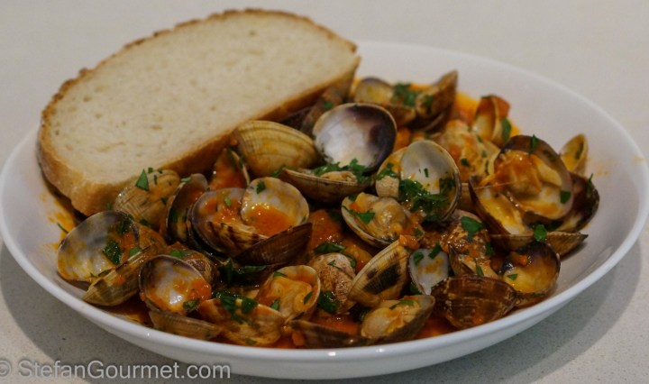 Vongole veraci are Italian clams and they are just so flavorful. The best thing is, they come with their own sauce (i.e. the juices they release when they are cooked) and so it takes very little effort to turn some … Continue reading Vongole alla Marinara (Clams in Tomato Sauce)